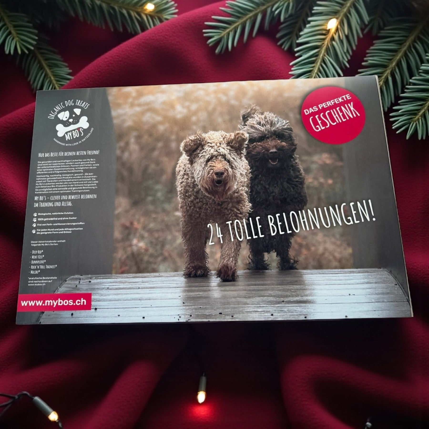 1. offizieller Adventskalender von My Bo‘s. 24 Türchen, hinter denen die gesunden Leckerlies in 100% Bio Qualität sich verstecken.